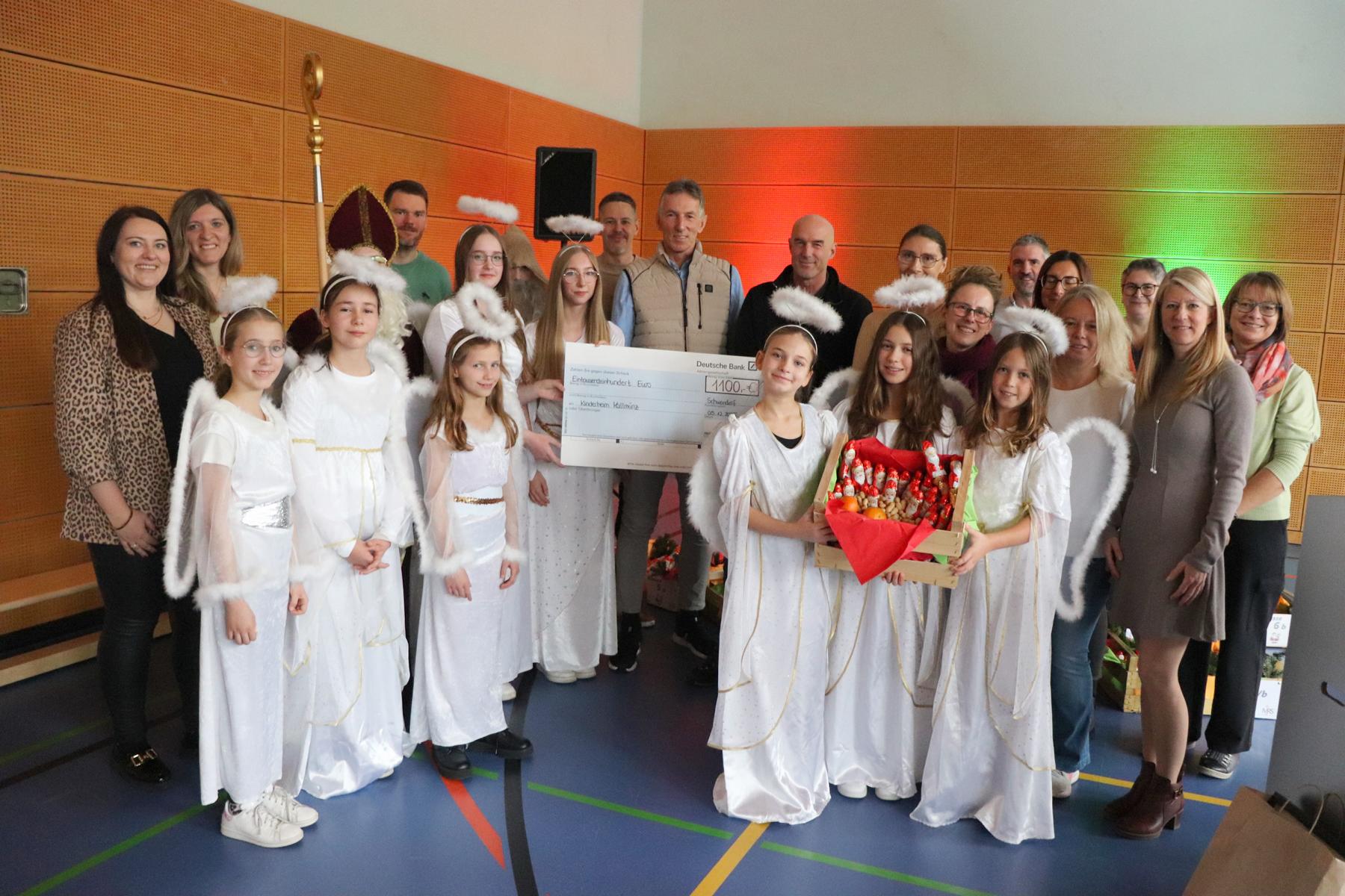 Nach getaner Arbeit verabschiedete sich der Heilige Nikolaus schließlich von der Schulfamilie mit dem Versprechen, der Schule auch im nächsten Jahr wieder einen Besuch abzustatten, und dankte noch dem Elternbeirat, der auch in diesem Jahr wieder die Schokonikoläuse für alle spendiert hatte.
